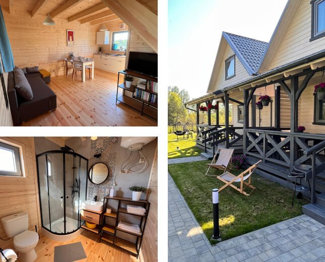 Nasze domki zlokalizowane są w zupełnej ciszy, na skraju lasu w bliskości rzeki i stanowią świetną bazę wypadową do pobliskich atrakcji.