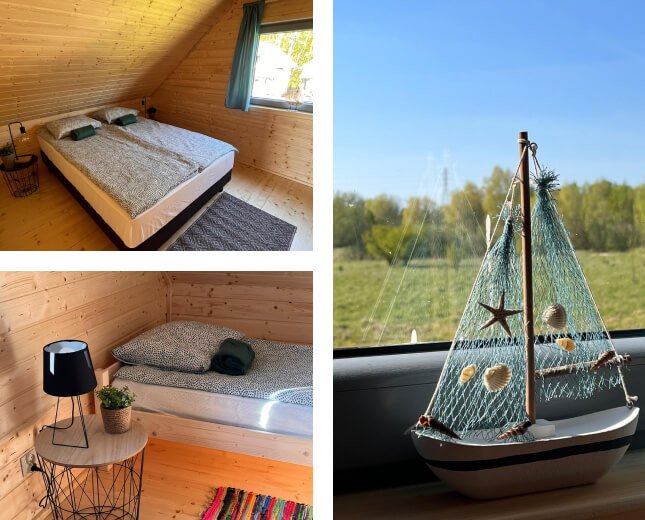 Mamy dla Państwa 11 zupełnie nowych i komfortowo urządzonych domków letniskowych dla 4-6 osób, które rozplanowaliśmy w postaci małego, kameralnego i ogrodzonego ośrodka.